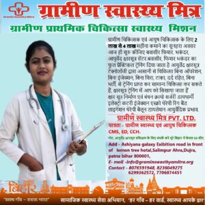 👉 Gramin Swasthya Mitra एक ग्रामीण स्वास्थ्य कार्यकर्ता (Rural Health Worker) का रोल है — जो गांवों में स्वास्थ्य जानकारी, प्रारंभिक निगरानी, स्क्रीनिंग और प्राथमिक उपचार प्रदान करता है।